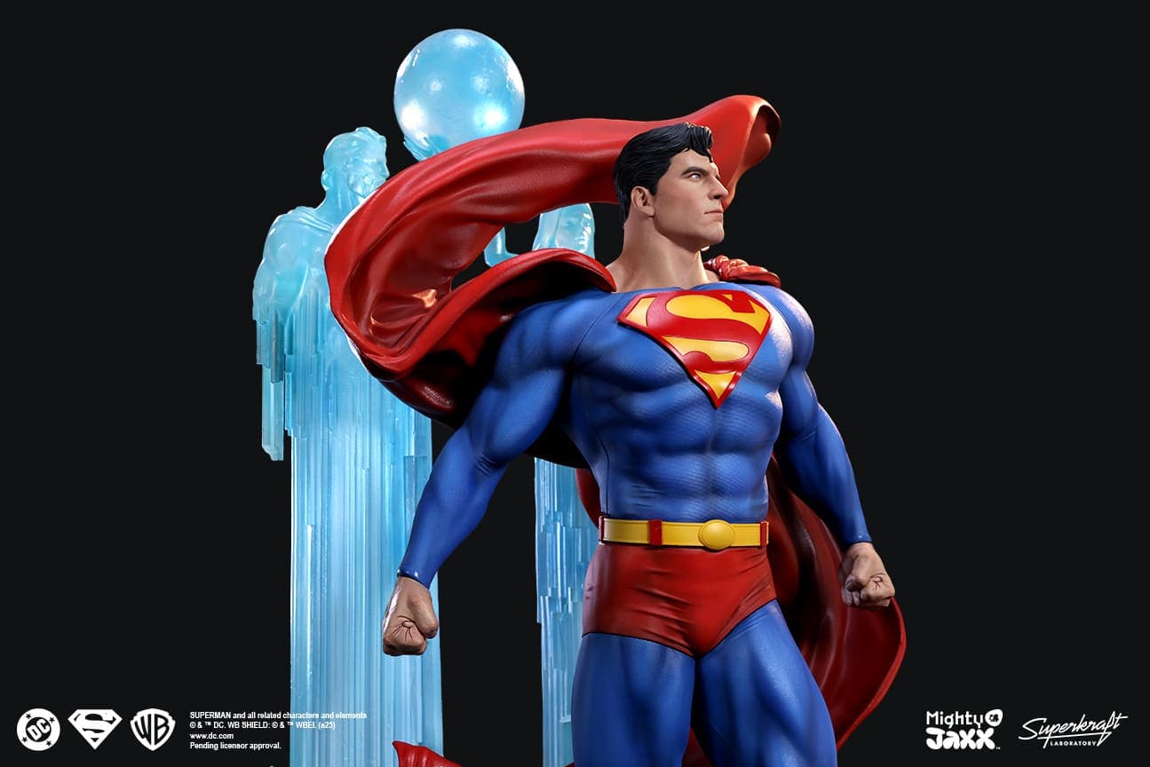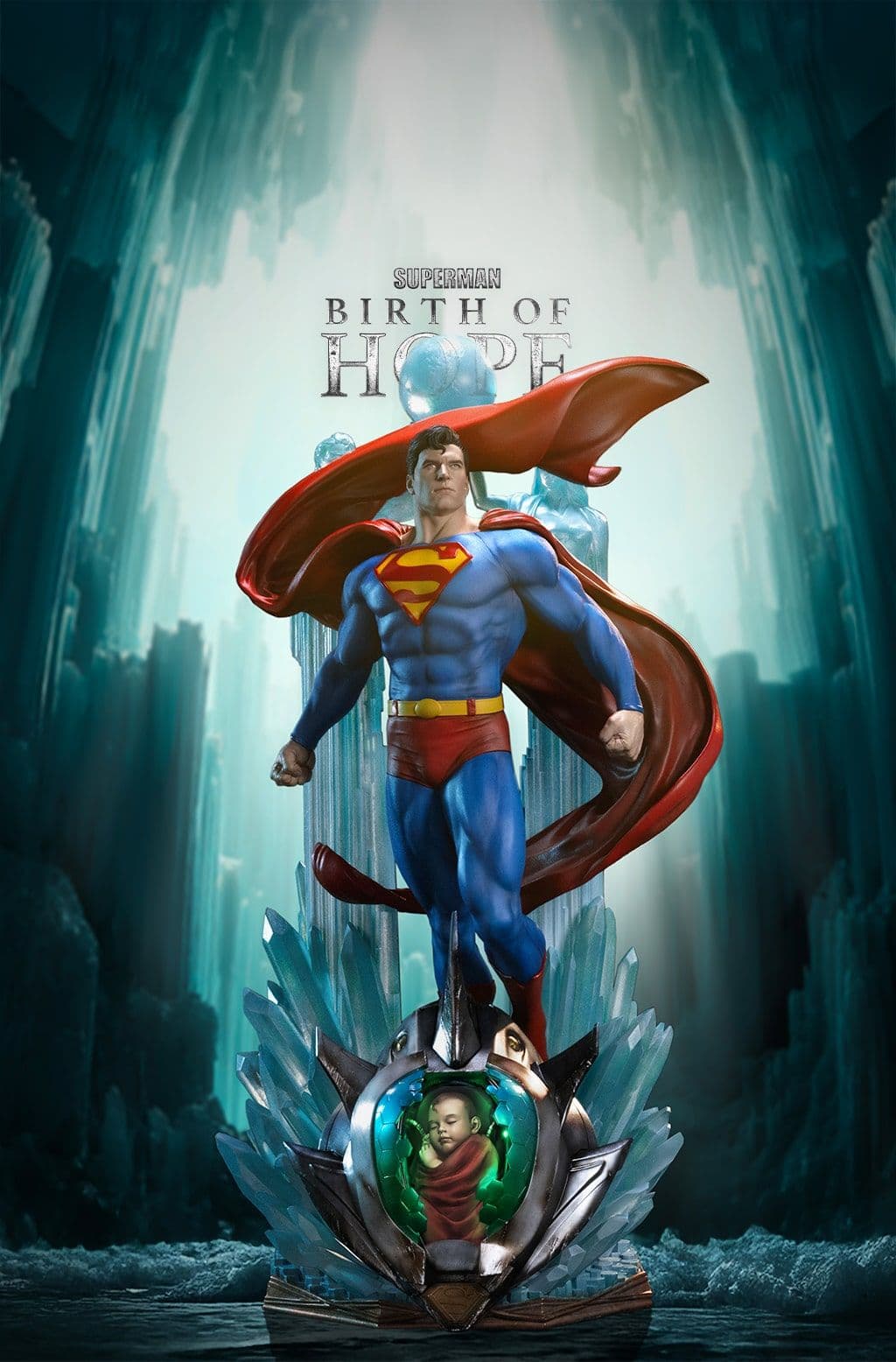 “Live as one of them, Kal-El, to discover where your strength and your power are needed. But always hold in your heart the pride of your special heritage.“ Superkraft is proud to present this stunning statue that captures the essence of Superman’s origin. At its core is the iconic moment of his arrival on Earth, represented by the landing of the Kryptonian escape pod. Behind it, Superman stands tall with his cape billowing behind him, forming the legendary "S" emblem, a universal symbol of hope and his enduring identity. The base of the statue is inspired by the Fortress of Solitude, Superman’s sanctuary on Earth, faithfully recreated in clear resin to reflect its unique architecture. At the rear, statues of his Kryptonian parents emerge from the crystal formations, standing watch over the fortress as eternal guardians. This intricately crafted statue offers multiple customization options and premium add-ons to elevate it to a whole new level. Featuring a gold plated emblem and a variety of interchangeable base designs, each setup allows you to tell a unique story. Don’t miss your chance to own this iconic piece of memorabilia, a tribute to Superman’s legendary origin and enduring legacy.